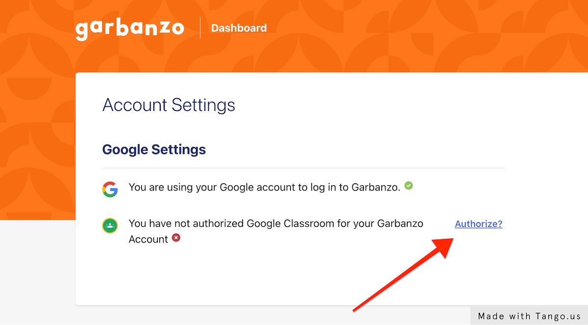 Click the Authorize link and follow the prompts from Google to reauthorize Google Classroom.